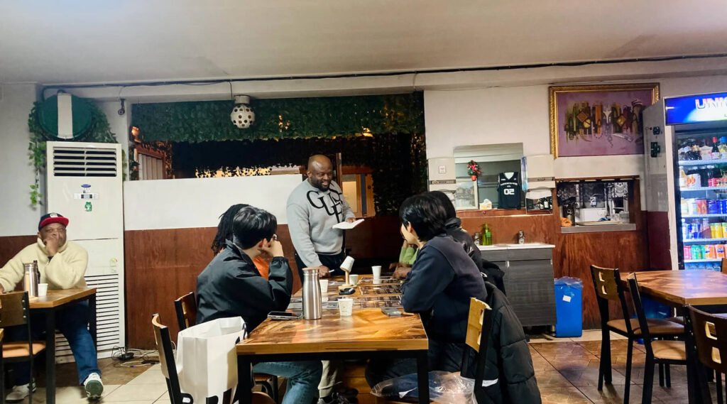 You don’t find Happy Home by accident. Someone in a WhatsApp group sends you the address, or a friend grabs your arm and says “trust me on this one.” That’s how word travels about a place that has been quietly feeding Seoul’s African community for over 14 years. The owner, Ozo Emeka Martins, is from Port Harcourt, Nigeria, and opened this restaurant with one simple intention: to make people feel at home. Walk through the door and the aroma hits you first — palm oil warming, spices blooming, stock simmering low and slow. Highlife music plays softly. The crowd is a genuine mix of Nigerians, expats and Koreans eating with their hands, which is exactly the point.
